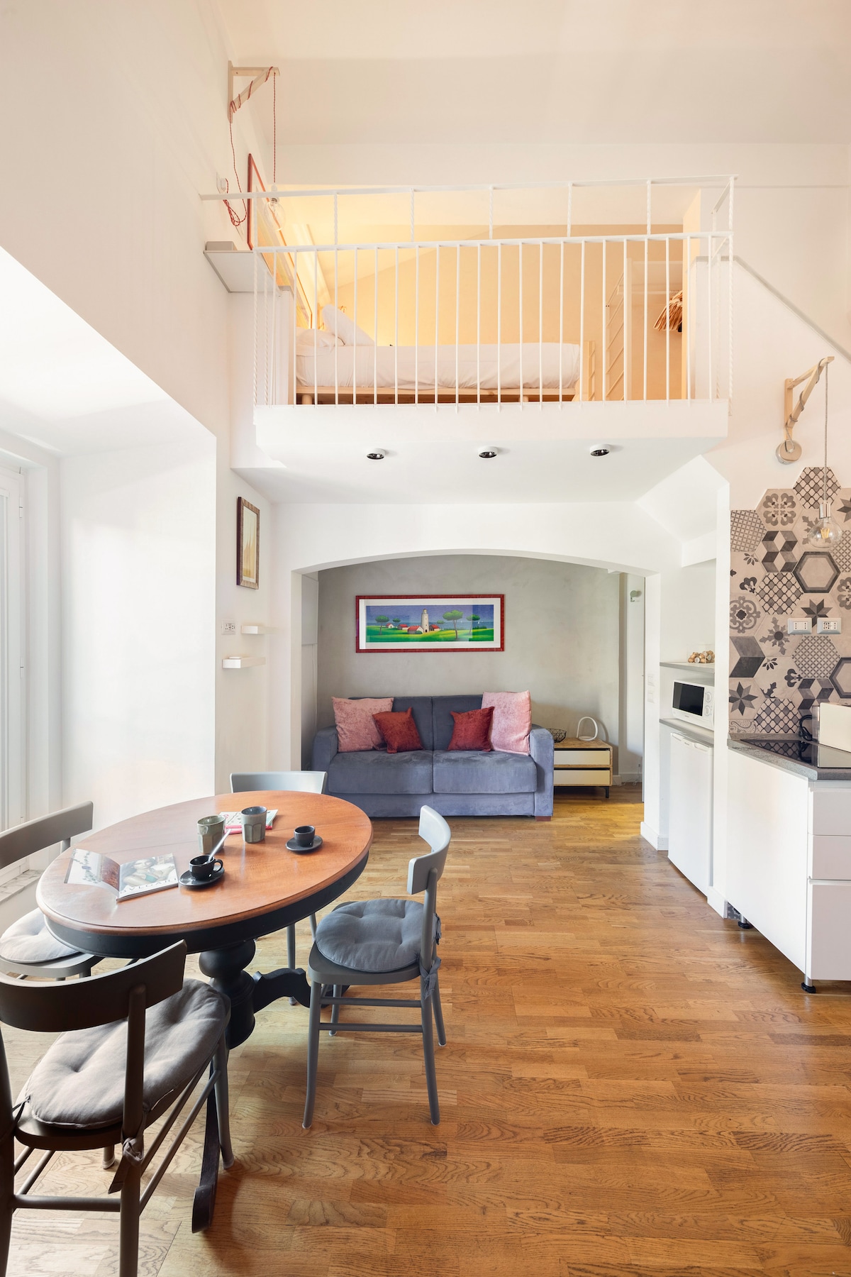 Un loft de 83 mètres carrés élégamment rénové en plein centre de Rome. Situé à quelques pas de Campo de’ Fiori, Piazza Navona, Trastevere et Panthéon. L’appartement finement meublé, dispose du Wi-Fi, de la climatisation, de la télévision, d’une cuisine équipée et fonctionnelle, d’un salon, d’une chambre à l’étage, de deux salles de bains, d’une armoire et de divers dispositifs de sécurité. Le point de départ idéal pour votre séjour à Rome !