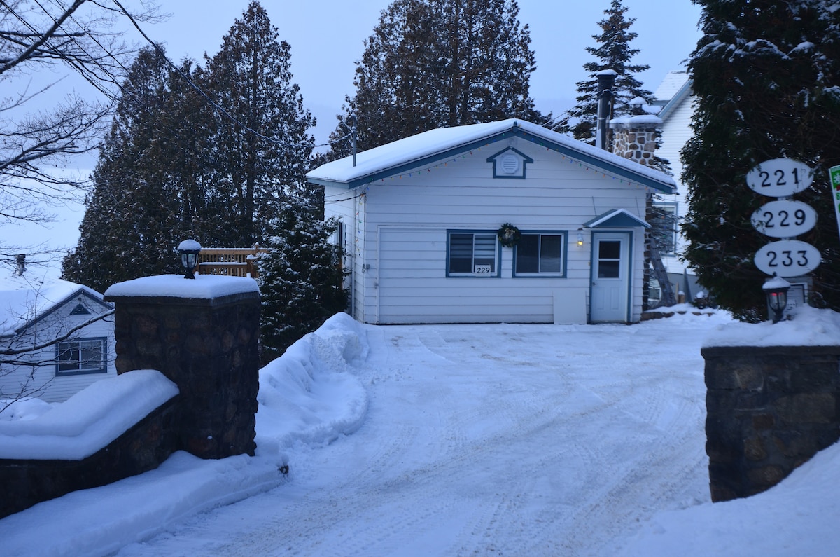 Si vous cherchez à faire une pause, essayez notre charmant chalet de 1 000 pieds carrés sur 2 niveaux. Poêle à bois ; apportez votre propre bois de chauffage, etc. À 4 km du parc national du Mont-Tremblant. Besoin de travailler, Internet haut débit et Wi-Fi rapide MESH. Jacuzzi partagé entre 2 chalets. Le quai avec accès aux kayaks, canoë, pédalo, etc. est partagé avec notre maison principale et notre famille. PAS DE BARBECUE en hiver. Il y a beaucoup de place pour tout le monde, mais nous voulons juste être clairs, c'est partagé. CITQ #298403