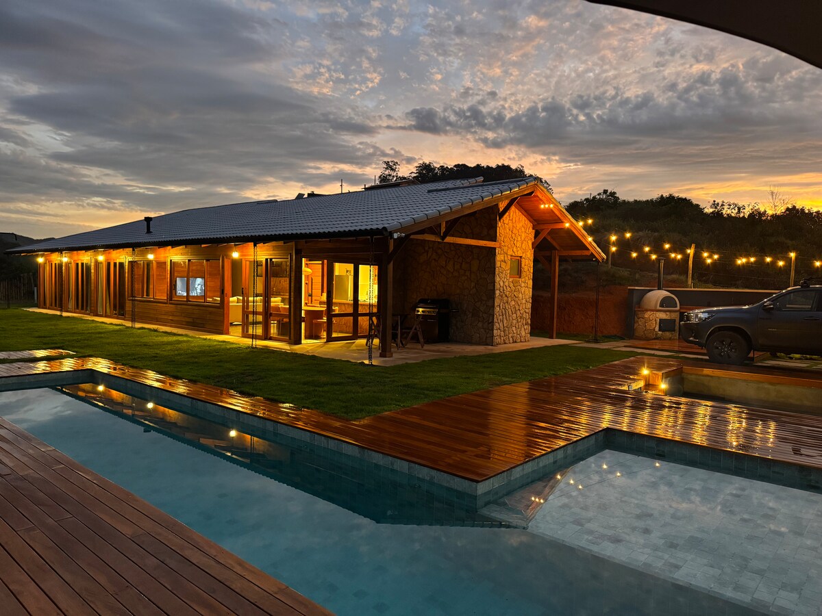 Lieu d'apaisement, de célébration en paix. Apaiser le temps, l'âme, le corps et vivre les jours sous le dôme du ciel et des arbres, les dames du territoire. La Casa de Cima est située sur un terrain de 5 000 m². Il y a un salon, une chambre, un bureau, une cuisine, une salle de bain, des balcons. Espace gourmet avec douche, salle de bain, piscine et barbecue. En bas, piscine naturelle avec eau de source. Elle peut accueillir quatre personnes. Nous sommes dans le Condomínio Capim Roxo, à 5 km du centre de Secretário, concierge 24h/24, sécurité totale.