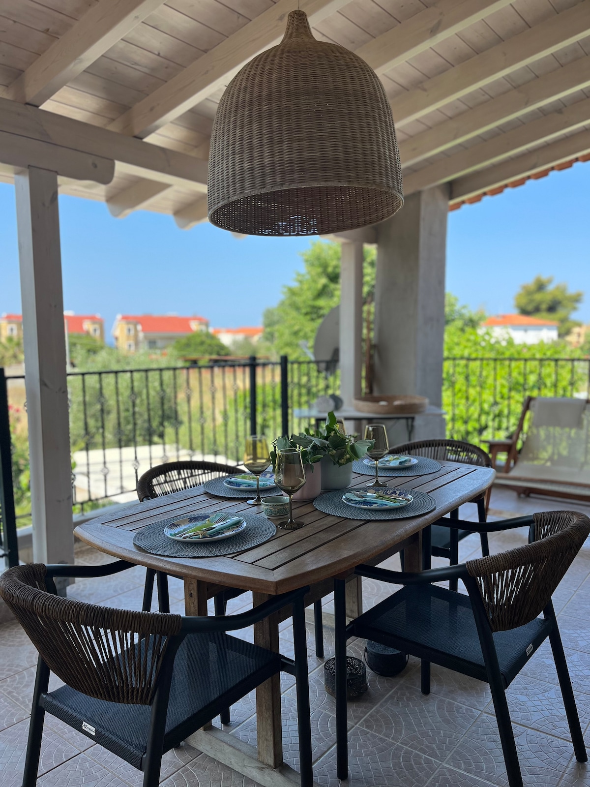 Nous avons restauré une maison familiale de 1955 et couplé l'élément local traditionnel au mode de vie moderne. La propriété est située sur une colline en face du château byzantin de Toroni et de sa célèbre côte. La villa offre une vue panoramique sur la mer et la montagne. Il offre un espace vert luxuriant de 500 m ², avec un espace bien conçu pour un vrai repos. L'emplacement est littéralement spécial car il est proche et en même temps loin du grand nombre.Fora few....
