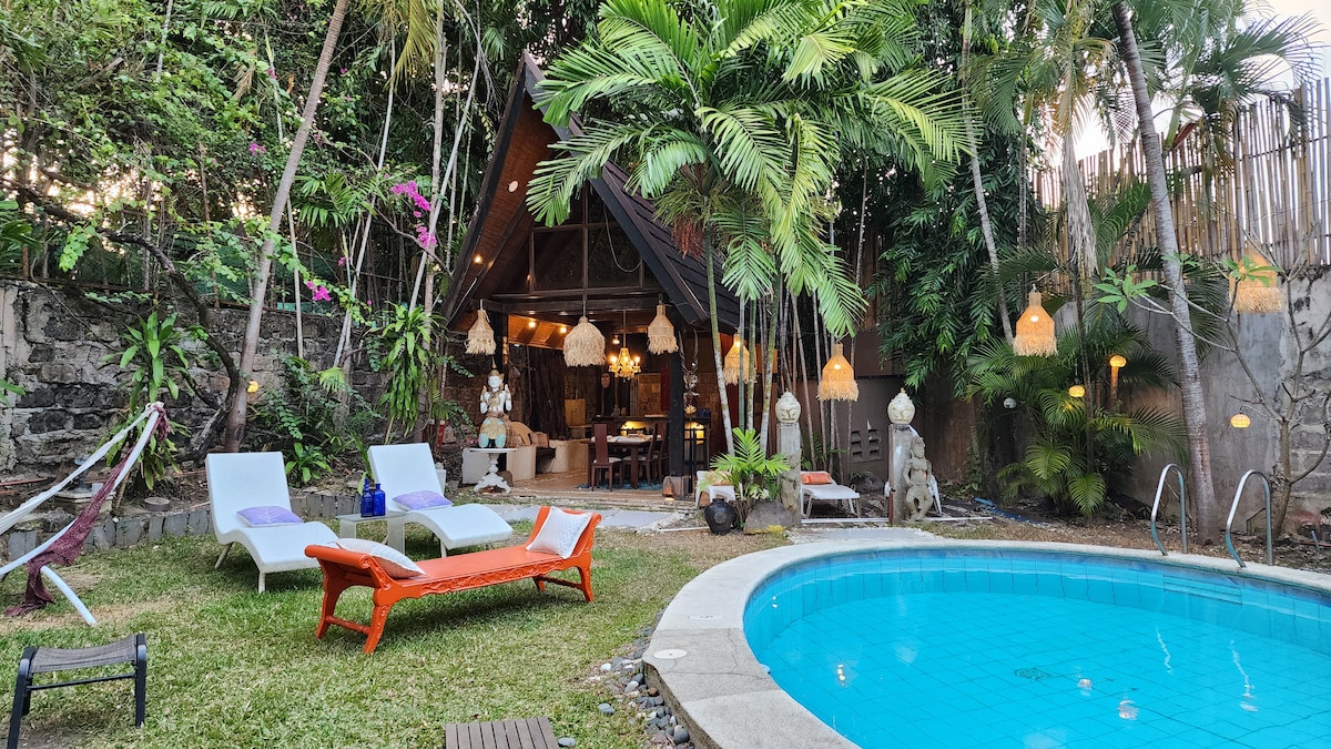 Celebrate graduation with resort vibes in the city 🎓🌴 Private pool, lush garden, charming animals & Balinese pool house with bar & BBQ 🏊🌺 Three-Bedroom, Fully Air-Conditioned Villa with New Centralized Air-Conditioning for the Entire Ground Floor — Cool & Comfortable All Summer ❄️ Plush beds w/ Smart TV & Netflix 🛏️ ₱1,000 per pax (10 guests, max 12). Solid value! Towels, toiletries & water included. 3 parking slots 🚗 ₱800 cleaning fee. Let’s host u soon🫶 Book now before dates fill up! 🎉