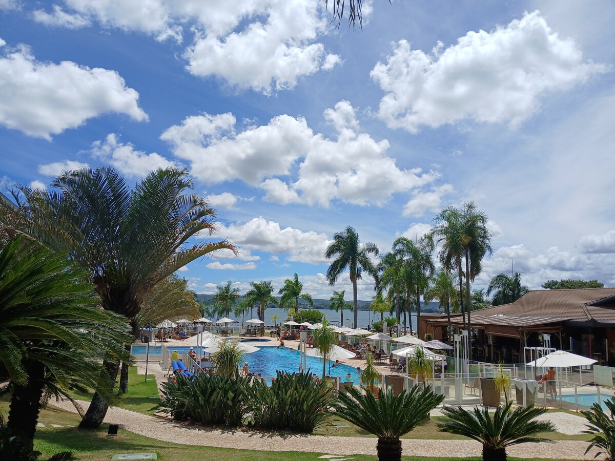Situé dans le Condominium Life Resort ! Appartement avec vue sur la piscine/lac Paranoá, télévision par câble, filtre à eau, Wi-Fi ; Avec un excellent emplacement. (À 7 minutes de l'esplanade des Ministères et à 10 minutes de l'AMBASSADE AMÉRICAINE) à proximité du secteur des ambassades du nord ; À l'intérieur de la copropriété, il y a un restaurant, une pizzeria, un salon de beauté, un café, une supérette, une supérette, une laverie et un pub !