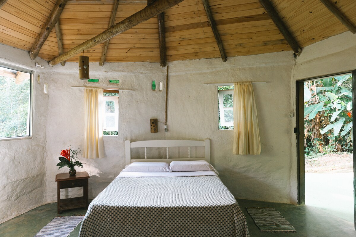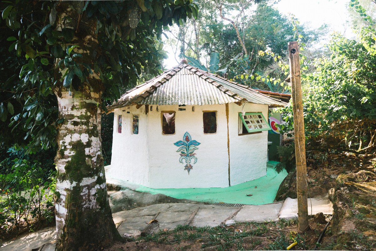 Eco-vila dans la forêt atlantique adaptée au bureau à domicile avec intertet à fibre optique. Situé dans le Pedras Azuis avec accès par la BR 101 à environ 500m. 12 km du centre de Paraty. Nous avons un restaurant végétalien et végétarien sur la propriété, servant tous les repas au menu ou au plat du jour