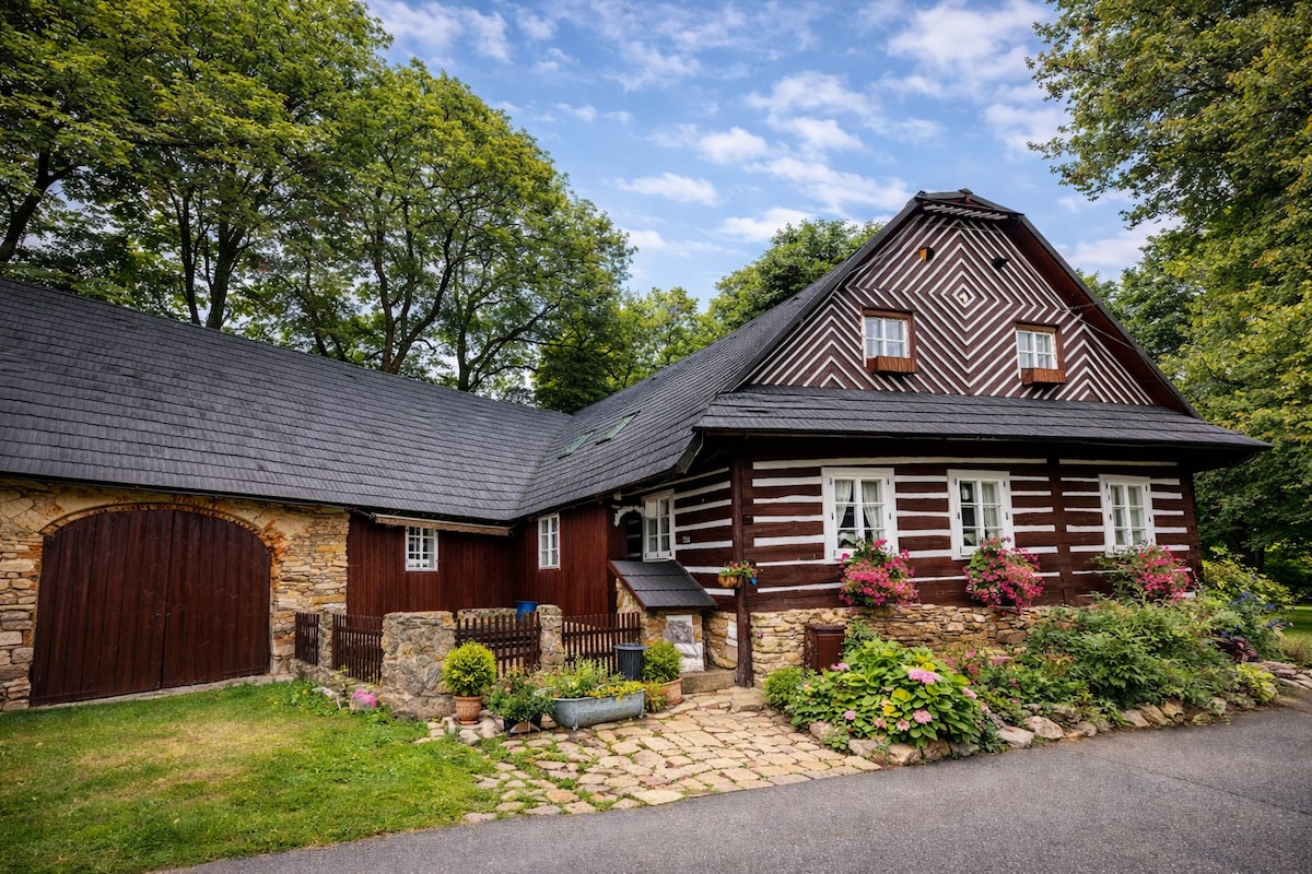 Tylda Cottage est une ferme historique rénovée avec un riche passé. À l'origine, il servait de messager rapide à Josef Hudce à Lhota Lísek. Il propose trois appartements pouvant accueillir jusqu'à 19 personnes, idéal pour les familles, les amis ou les événements d'entreprise. Chaque appartement dispose d'un accès à un jacuzzi, de ses propres installations sociales, d'une connexion Wi-Fi et d'une cuisine entièrement équipée. Une salle sociale avec un juke-box, des fléchettes, un baby-foot et un ping-pong offre des divertissements, des sièges extérieurs avec un gril offrent un repos tranquille.