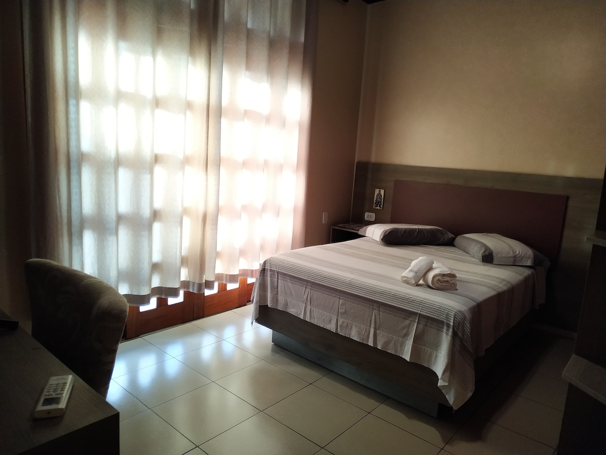 Apto com 3 comodos sala, cozinha e quarto com banheiro, acomoda perfeitamente uma familia pequena ou um casal confortávelmente, é perto de padaria e restaurantes proximo ao centro e facil acesso para qual quer bairro da cidade, aceitamos seu pet com uma pequena taxa.