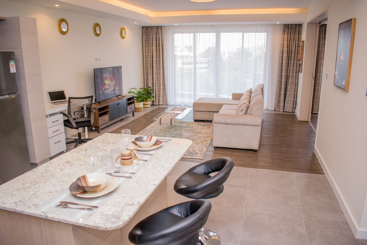 Entrez dans le calme de cet appartement moderne de deux chambres à Riverside One, conçu pour le confort et la facilité. L'espace dispose d'un salon lumineux, d'un balcon privé, de deux chambres reposantes et d'une cuisine entièrement équipée, parfaite pour les repas faits maison. Les voyageurs bénéficient d'un accès à une piscine chauffée, à une salle de sport et à une aire de jeux pour enfants. Situé dans le quartier huppé de Westlands Riverside, à proximité des meilleurs restaurants, centres commerciaux et bureaux de l'ONU, sécurisé, paisible et pratique.