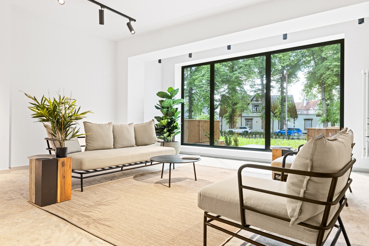 Bienvenue dans votre toute nouvelle retraite élégante de 50 m² en bord de mer à Pärnu, la capitale estivale animée de l'Estonie ! Situé dans une rue calme, notre appartement contemporain offre une escapade paisible à quelques pas de la plage et du centre-ville animé. Parfait pour les familles et les couples, notre espace dispose d'une cuisine entièrement équipée, d'un lit king-size confortable dans un coin nuit isolé et d'un canapé-lit luxueux. Économisez sur les frais de stationnement avec votre place privée (d'une valeur de 25 € par jour).