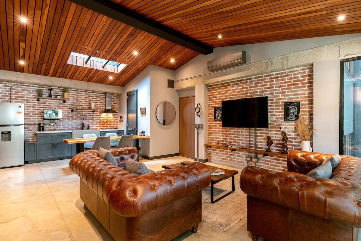 Les voyageurs adorent ce triplex architectural de 115 m² pour son caractère, son emplacement privilégié et sa flexibilité. Une maison verticale unique en son genre avec des atmosphères distinctes sur trois niveaux : une suite calme avec lit King Size, climatisation et patio, un studio dédié au télétravail, un salon ouvert avec un canapé-lit King Size et un grenier zen pour se détendre ou dormir occasionnellement. Wi-Fi rapide, lave-linge/sèche-linge, parking privé, ascenseur et sécurité 24h/24 et 7j/7. Marchez jusqu'à Provenza, Parque Lleras, cafés, parcs, métro. Idéal pour les couples et les créatifs !!!