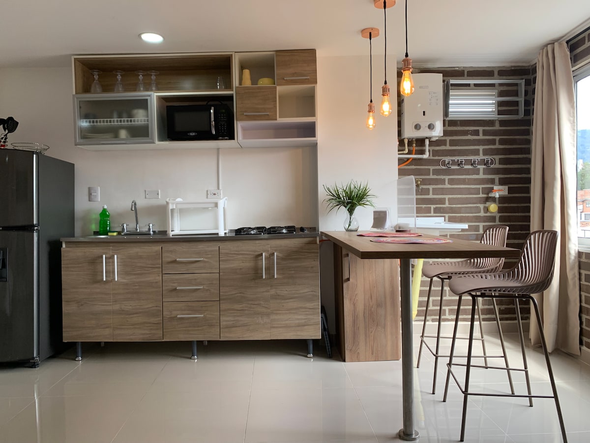 Suite entièrement meublée de 28 m2, climatisée et kitchenette. Située dans l'une des meilleures zones de Medellin, dans un quartier très calme et proche de tous les sites touristiques. La Suite dispose d'une vue spectaculaire sur la ville et les montagnes. Vous pourrez profiter de l'espace de coworking, d'une salle de sport et d'un café spectaculaire qui propose différents types de boissons à base du meilleur café colombien, vous pourrez profiter de votre boisson sur la terrasse située au 2ème étage de l'immeuble.