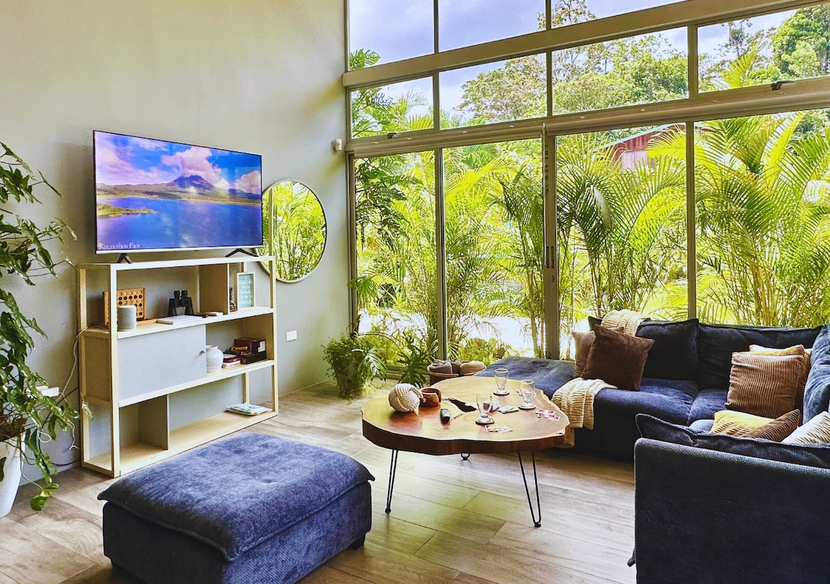 Spécialement conçu pour choyer nos utilisateurs Airbnb en leur offrant des espaces luxueux et fonctionnels et une touche d'immersion dans la nature qui répondra à ce besoin de paix et de détente. Stratégiquement situé à seulement 5 minutes du centre-ville de La Fortuna, cet appartement dispose d'une piscine/jacuzzi intérieure privée, d'une belle vue sur le volcan Arenal depuis son balcon et sa cuisine, de la climatisation dans la chambre, ainsi que d'une salle de bain avec une douche ouverte avec toit en verre.