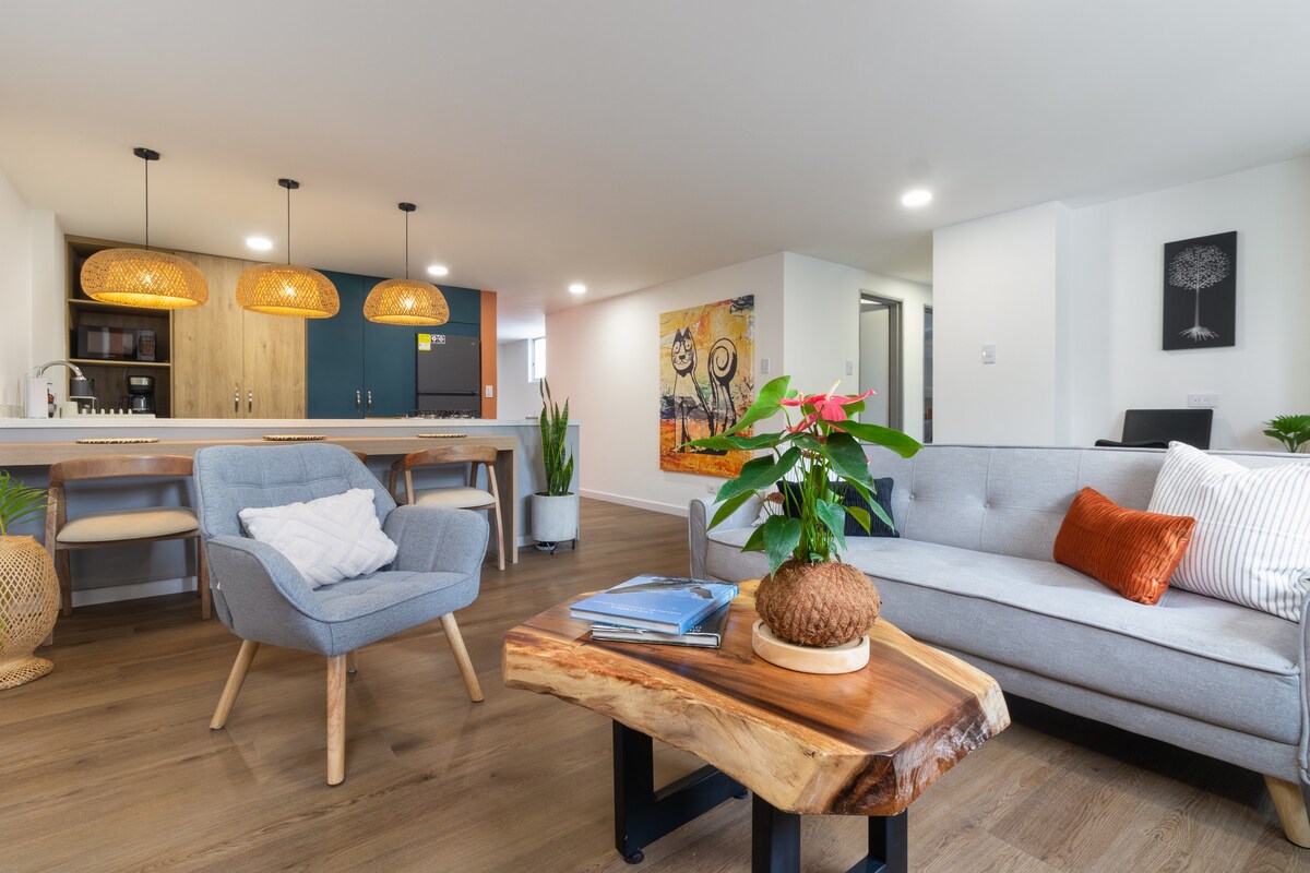 Emplacement ★ privilégié avec jacuzzi privé ★ Bienvenue dans votre élégante escapade dans le quartier le plus animé de Cali. Cet appartement moderne de 2 chambres offre tout ce dont vous avez besoin pour passer un séjour confortable et mémorable, notamment un jacuzzi privé, des lits king size et queen size, la climatisation dans chaque chambre et un parking dédié, à quelques pas des meilleurs restaurants, cafés et monuments. Que vous soyez ici pour danser, explorer ou travailler à distance, cet appartement vous rapproche de tout ce qui rend Cali inoubliable.