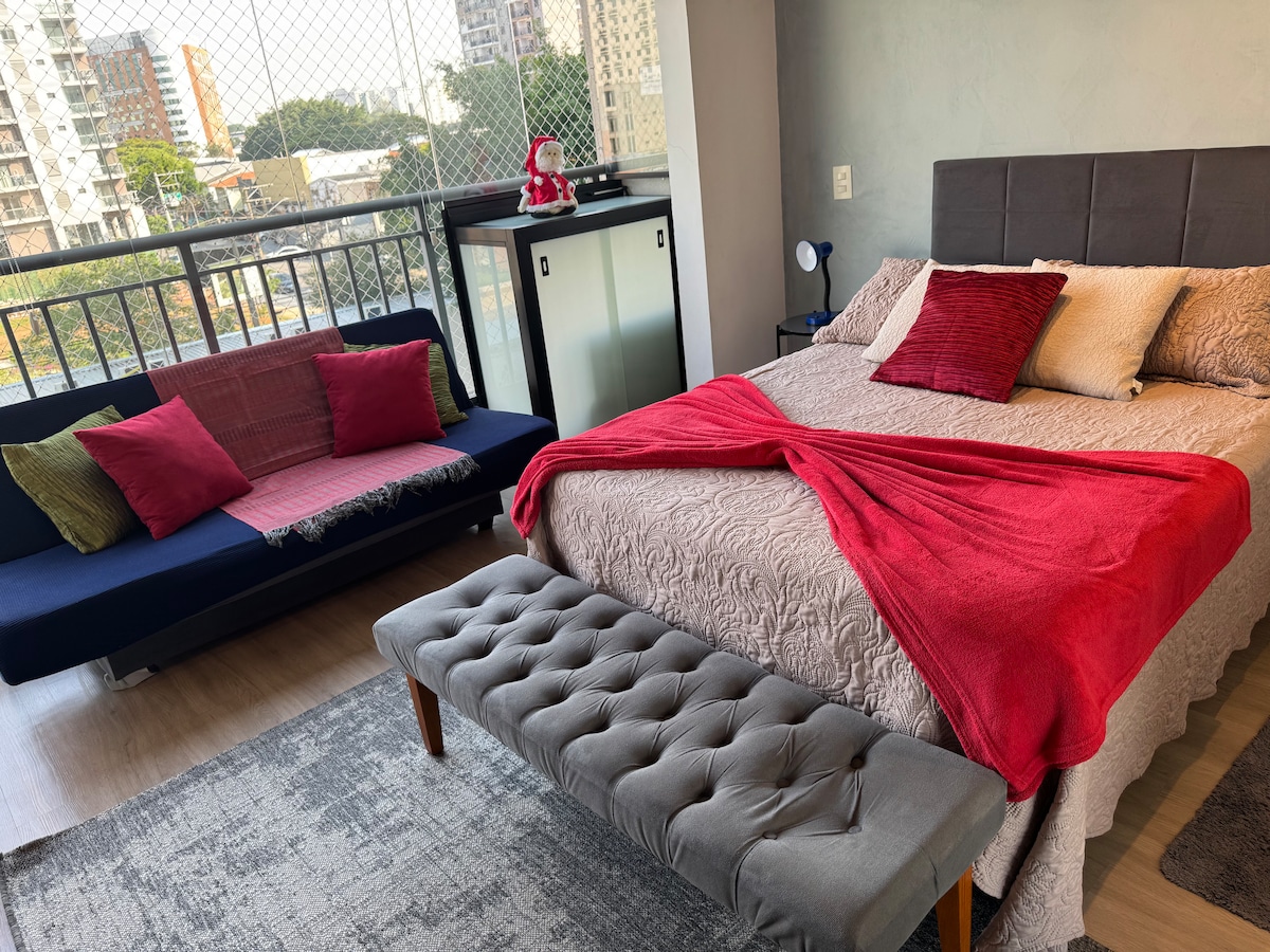Extrêmement bien situé avec service de ménage et nettoyage tous les jours. Excellente piscine, salle de sport et sauna sur le toit. Entouré des restaurants et bars les plus populaires et primés de São Paulo. Appartement lumineux et ventilé. Séjour avec canapé convertible Queen Size pour regarder la télévision et table à manger pour 4 personnes. Chambre avec lit queen size et bureau. Cuisine avec tous les ustensiles. Place de parking.