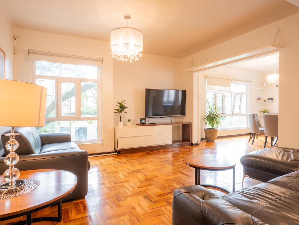 AU CŒUR DE POLANQUITO, à quelques pas du PARQUE LINCOLN et à un pâté de maisons de Presidente Masaryk, cette spacieuse retraite de 3 chambres allie le confort d'un hôtel-boutique au charme local. Réveillez-vous avec une vue bordée d'arbres ; promenez-vous dans les cafés, les restaurants et les musées, y compris Musée d'anthropologie : retournez pour vous détendre avec style. Profitez d'avantages rares : ménage en semaine (du lundi au vendredi, vaisselle faite), connexions de conciergerie, panier de bienvenue, entrée smart-lock, Wi-Fi rapide et équipements familiaux (lit pour bébé et chaise haute sur demande). Service de blanchisserie disponible.