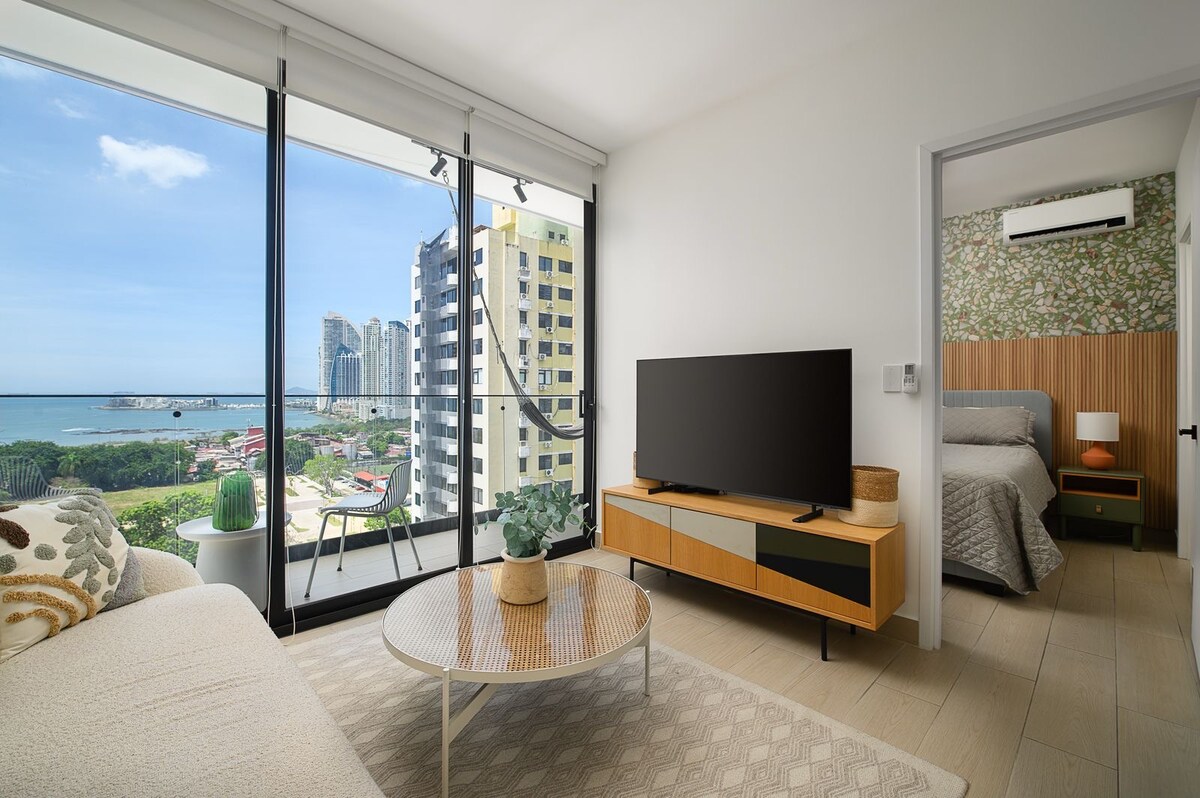 ➤ Bright ✨ and beautifully decorated apartment with ocean views 🌅, a private balcony and an unbeatable location📍. 🚶🏻🚶🏻♀️Walk 5-10 mins to Restaurants, Supermarkets, Multiplaza Mall, Cafes 🧑🏻💻 Ideal for remote workers , desktop, 750 MB internet speed, 100 Up. ➤ Urban Escape - Building Highlights: ★ Gym. ★ 2 Co-Working Spaces with 500 MB internet speed. ★ Pool on the Rooftop Terrace. ➤ Located in San Francisco, Panama City | Rooftop Pool | Explore the city easily | Uber-Friendly