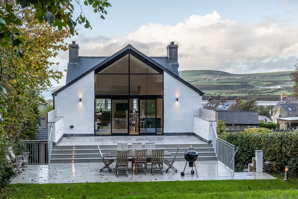 Golwg y Lan est une maison exceptionnelle, où vous pouvez rassembler vos personnes préférées et créer des souvenirs qui dureront toute la vie. La maison elle-même est construite à l'envers, ce qui signifie que l'espace de vie est une immense pièce ouverte au 1er étage avec une vue incroyable sur Newport Bay jusqu'à l'avant, et au rez-de-chaussée au plafond, le verre amène l'extérieur à l'intérieur. Les portes peuvent être ouvertes pendant les mois d'été vers la terrasse surélevée et la terrasse, et au-delà, la pelouse.