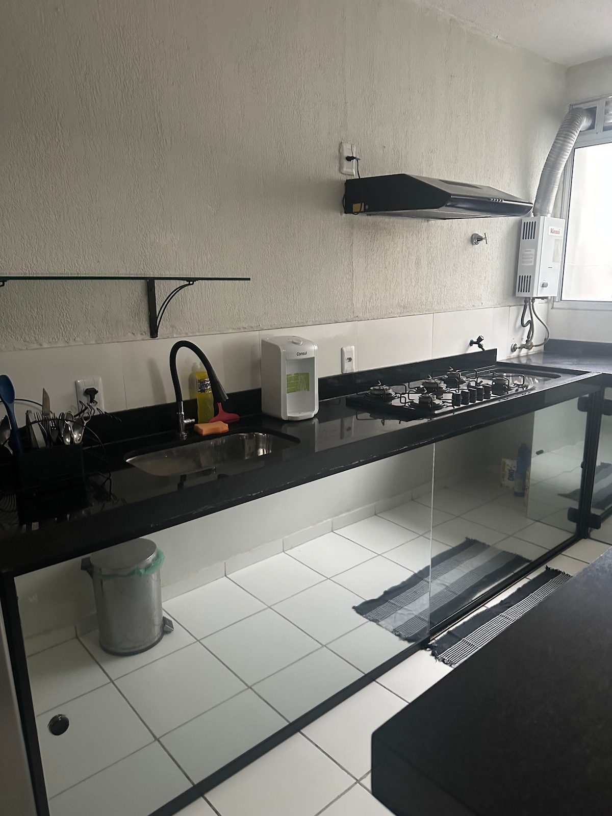 Apartamento térreo MRV, funcional e bem distribuído, ideal para descanso em viagens ou trabalho. Não é hotel cinco estrelas nem colônia de férias, apenas um apartamento MRV. Por ficar fechado, pode haver leve cheiro de mofo, mesmo limpo. Piso com marcas de tinta. Banheiro da suíte com pontos de umidade. Limpeza garantida a cada estadia. Ambiente simples e organizado. Churrasqueira mediante marcação. Piscina liberada para aluguéis de mais de 30 dias com carteirinha.