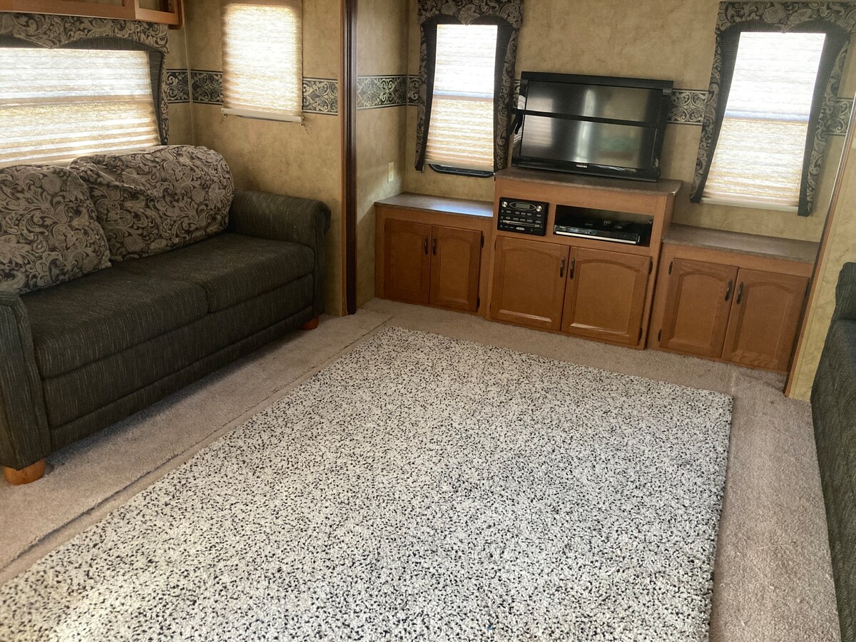 Spacieux camping-car avec plusieurs toboggans pour faire le salon et la cuisine de 14 pieds de large. Les deux canapés disposent d'un lit gigogne pour un espace de sommeil supplémentaire. Location court ou longue durée disponible