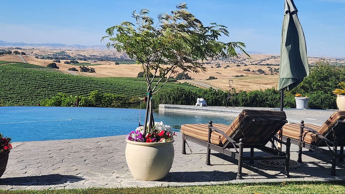 Cet endroit est magique. Sept acres privés avec une vue à 360 degrés sont entourés de vignobles que vous pouvez voir à travers la plupart des fenêtres. Sur la propriété, selon la saison, vous trouverez des pommes, des poires, des pêches, des cerises, des figues, des néfliers, des kakis, des grenades, des noix de pécan, des châtaignes et plusieurs cépages. L'espace extérieur comprend un patio couvert enveloppant, des repas en plein air, plusieurs espaces salons, des foyers, des balançoires, des jeux et une cuisine extérieure. C'est vraiment unique en son genre.