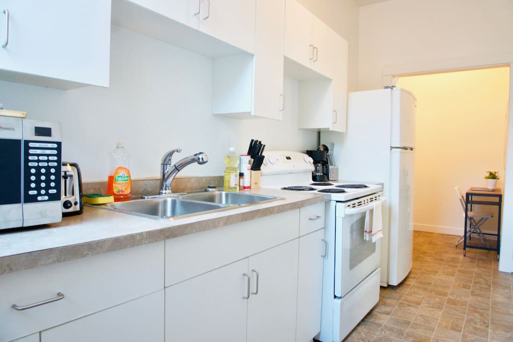 Enjoy your stay with us in a full kitchen (fridge, stove, sink, microwave, Keurig). 2 BR: Queen size in Master and Double in other. Pullout hideabed couch in the living room allows for total of 6 guests to stay at a time. Bathroom has bathtub and shower. Close to Moose Jaw Events Centre for hockey games and concerts as well as Yara Centre. Free shared laundry facility on premises. Play park and outdoor skating rink across street. Property comes with a Patio area and BBQ.