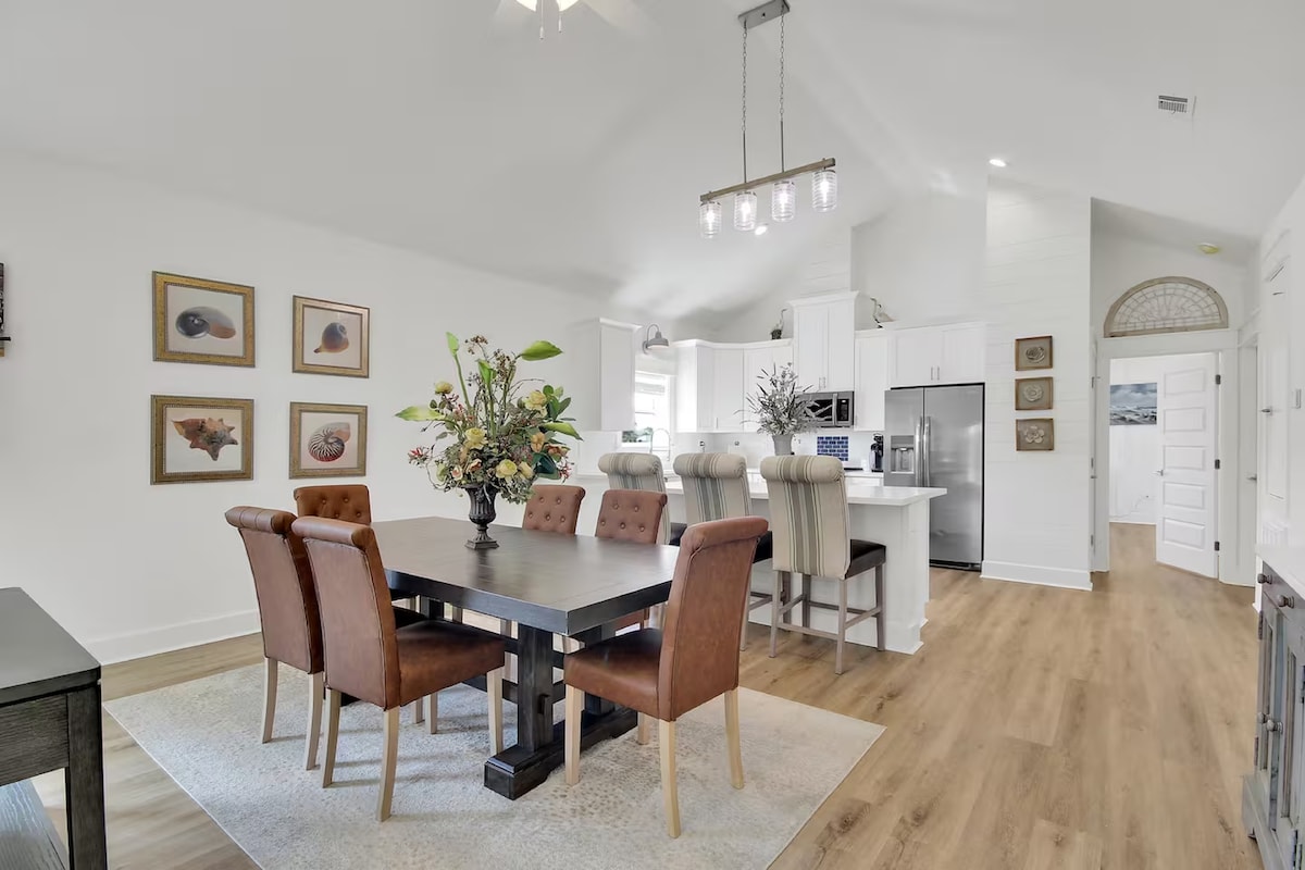 Profitez de votre escapade dans une maison de ville élégante et située au centre avec toute la sensation d'être chez vous. Tout ce dont vous avez besoin pour profiter des beaux sites et de la plage est facilement accessible depuis The Blue Heron. À distance de marche des magasins, des restaurants et du parc, à un pâté de maisons de la plage : le Blue Heron se trouve au milieu de tout cela. Il s'agit d'un logement à l'étage/en bas avec une cuisine entièrement équipée, des appareils électroménagers de grande taille et un bar à café Keurig approvisionné. Lits Queen Size dans chaque chambre avec salles de bain privatives.