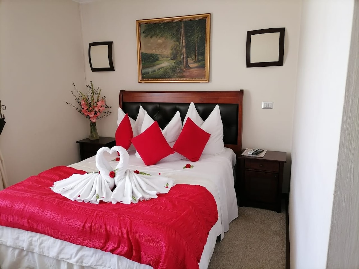 Ubicados a solo 30 metros del Lago Llanquihue y a solo 3 cuadras del centro de la ciudad, en un entorno tranquilo. Nuestras habitaciones matrimoniales son modernas y bien equipadas, con baño privado, cama confortable, cafetera y escritorio, ideales para tu descanso o trabajo. Ofrecemos un espacio acogedor, cercano a todos los atractivos de la región, para que disfrutes de una estancia cómoda y relajante. Habitación ubicada en un segundo piso, acceso por escalera interna.