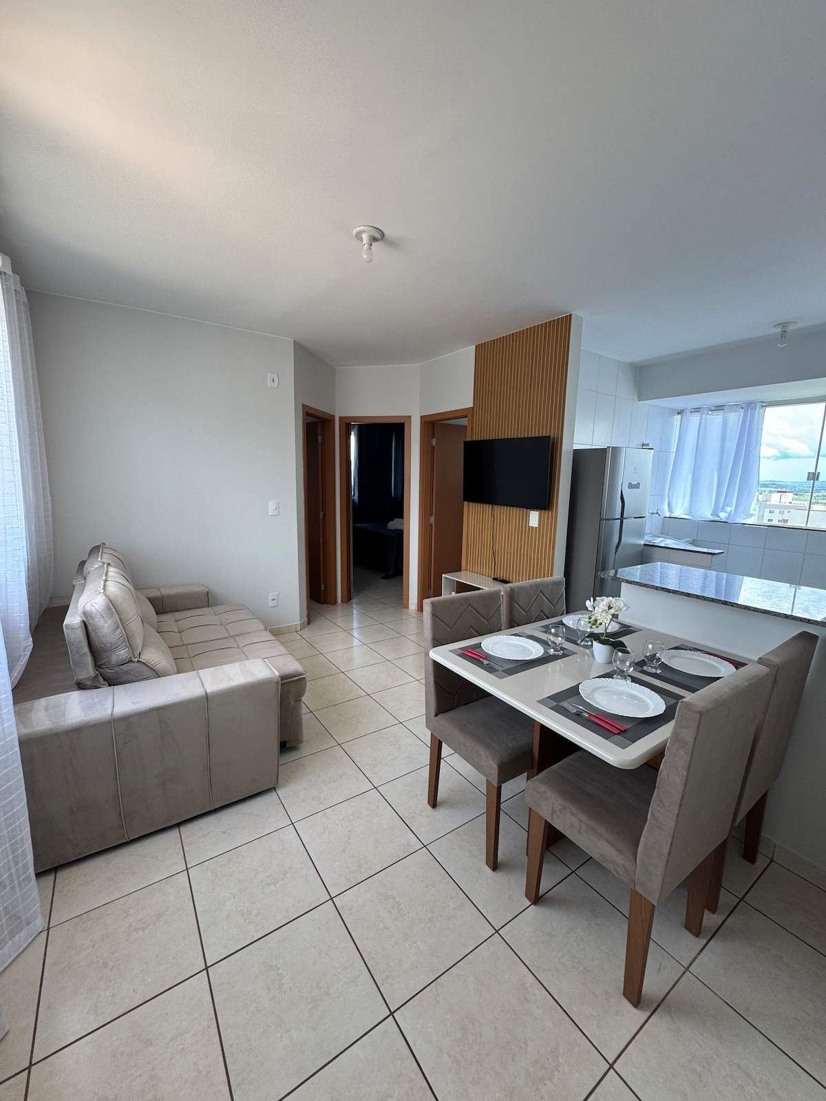 🌿 Votre retraite moderne à Patos de Minas Appartement moderne, extrêmement propre et entièrement équipé, à seulement 800 mètres du centre. Idéal pour ceux qui recherchent le confort et la praticité, que ce soit pour un voyage d’affaires ou de loisirs. Peut accueillir jusqu'à 4 personnes : ✔ garage ✔ Wifi 500 Mo ✔ Climatisation dans la chambre principale ✔ Téléviseurs connectés ; ✔ Cuisine complète Machine à laver ✔ ✔ Parure complète de linge de lit et de toilette Arrivée 100 % autonome grâce à une serrure électronique. Linge de lit blanc, serviettes et couvertures désinfectées.