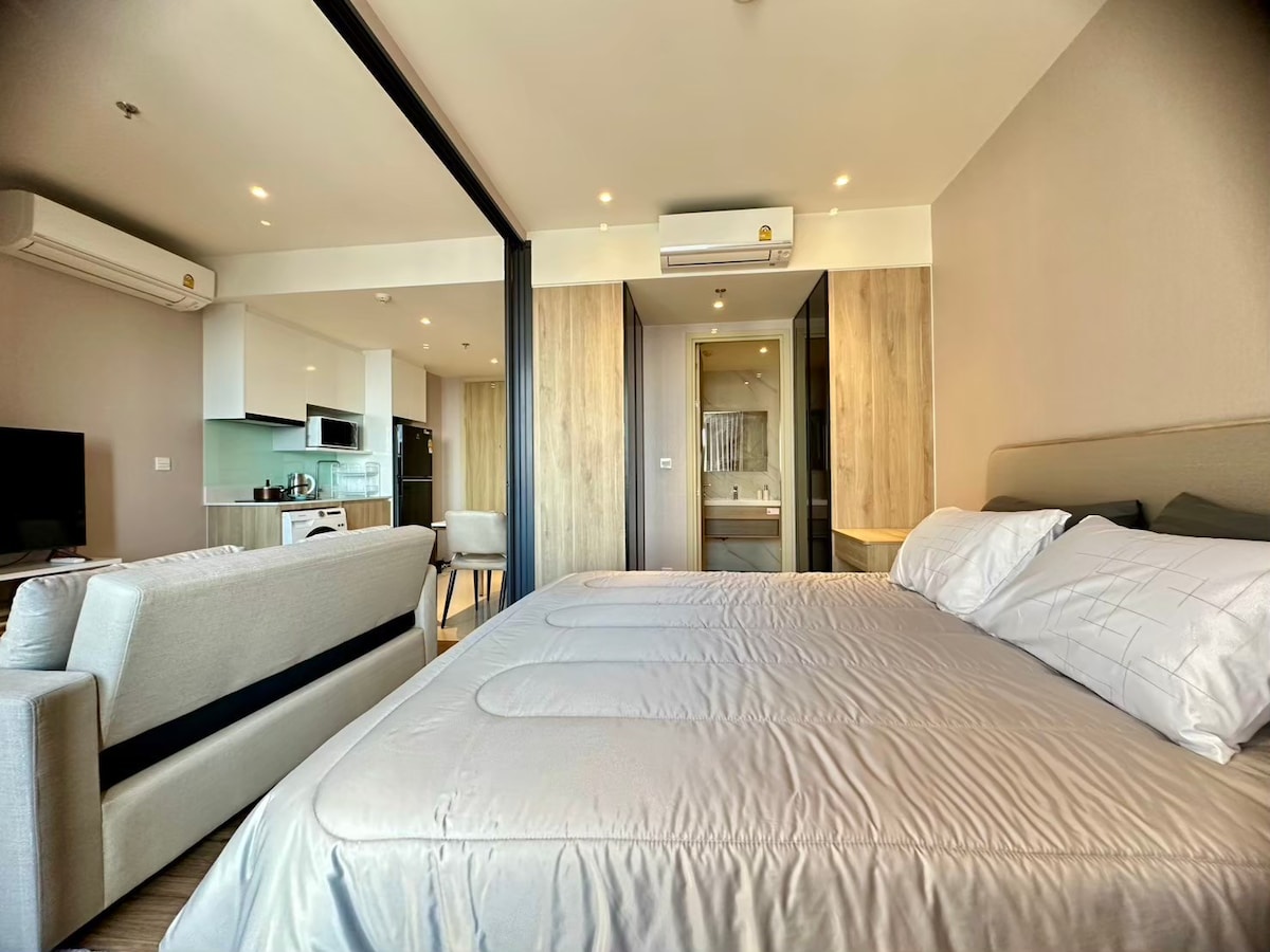 【50 % de réduction sur le loyer préférentiel des semaines】 Les appartements de base sont tous des chambres indépendantes, une chambre, un salon, une cuisine et une salle de bains, bénéficiant d'un espace privé. L'appartement est entièrement équipé et omniprésent, combinant des vacances relaxantes avec une résidence confortable La chambre est nettoyée et désinfectée. (Le nettoyage supplémentaire pendant le séjour coûte 300 THB) Service de sécurité 24 heures sur 24 pour l'appartement, une clé pour une chambre. Soyez assuré de rester et de vous amuser