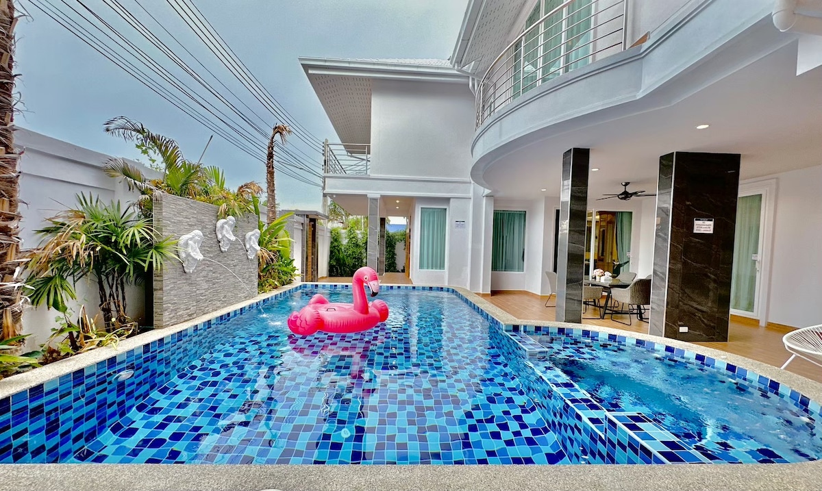 Bienvenue dans votre villa de luxe avec piscine privée à Pattaya, l'escapade idéale pour les familles, les amis et les groupes à la recherche d'espace, de confort et de souvenirs inoubliables. Réveillez-vous au soleil au bord de votre propre piscine, profitez d'un dîner barbecue sous les étoiles ou faites un court trajet jusqu'à la plage pour admirer le coucher de soleil, le tout depuis cette retraite tropicale magnifiquement conçue. Situé à proximité de la rue piétonne et de la plage, des commerces, des restaurants et de la vie nocturne, mais dans un quartier calme et paisible, vous obtenez le meilleur des deux mondes.