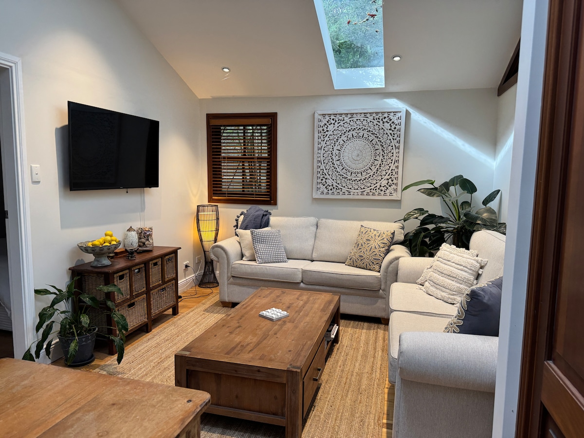 NEST AT BLUE BAY est un hébergement de luxe pour couples situé au cœur des deux baies spectaculaires, Blue Bay et Toowoon Bay. Les deux plages sont à seulement 5 minutes à pied et les cafés et restaurants-boutiques locaux branchés du village sont à moins de 200 mètres. Les couchers de soleil au bord du lac sont incontournables, à 20 minutes à pied. Nest convient pour 2 personnes (1 CHAMBRE king + baignoire luxueuse, douche et petite kitchenette, salon et terrasse privée. Buanderie et abri auto) Nous avons un barbecue à capot sur la terrasse.