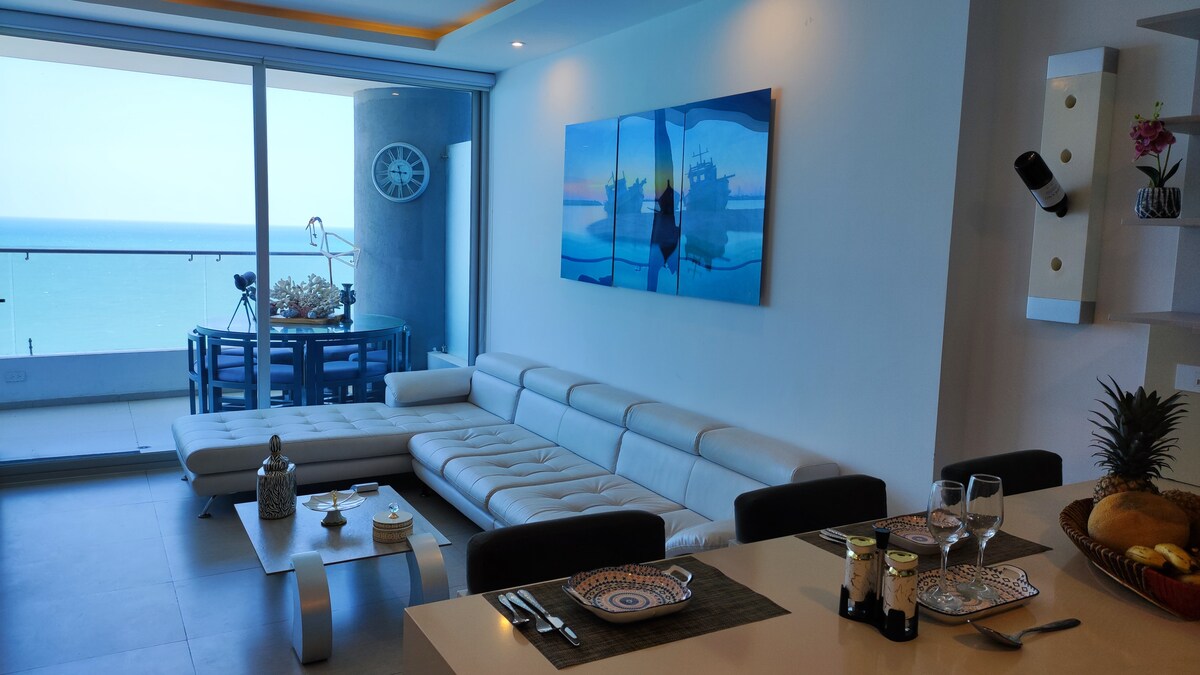 ✅ !Super anfitrión confirmado!🏆 😊!Llegaste al lugar perfecto! 🤩Vive unas vacaciones de lujo y comodidad. 🌊Vista espectacular al mar piso12 🛜 wifi & TV 💫GRATIS brazaletes 5 🏊Piscinas adultos y niños 🐶pet friendly 🌟 El apartamento cuenta con: 🛌3 habitaciones 🚾2 baños completos con agua caliente ❄️ AC 🛁Jacuzzi 🥘Cocina totalmente equipada 🍽️Comedor 🏖️Sillas de playa 🧖♂️Sauna 🏋️ Gimnasio 🚙1 parking 👮♂️ Seguridad 24/7 horas