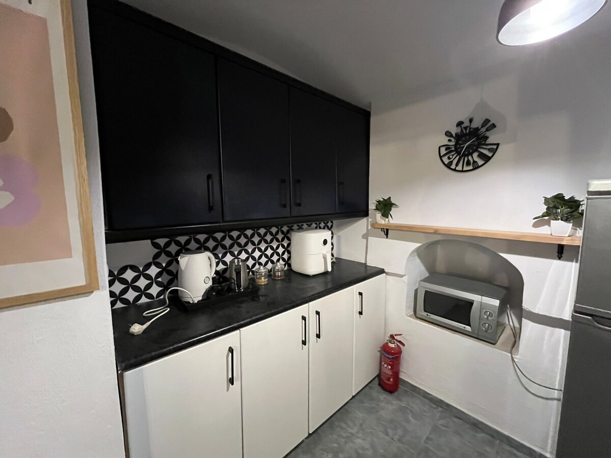 Ce logement affiche un style résolument unique. Belle maison d'une chambre dans le quartier des moulins à vent de Chorio, non loin de la baie de Pedi et du port, avec accès facile au village. Vue paisible sur la vallée de Pedi et les montagnes. L'emplacement est facilement accessible en bus et en taxi. Little Blue, comme on l'appelle, dispose d'un salon/salle à manger et d'une cuisine à l'étage et d'une chambre avec un lit Queen Size et d'une salle de bains en bas. Il y a deux lits de jour dans le séjour pour des couchages supplémentaires.