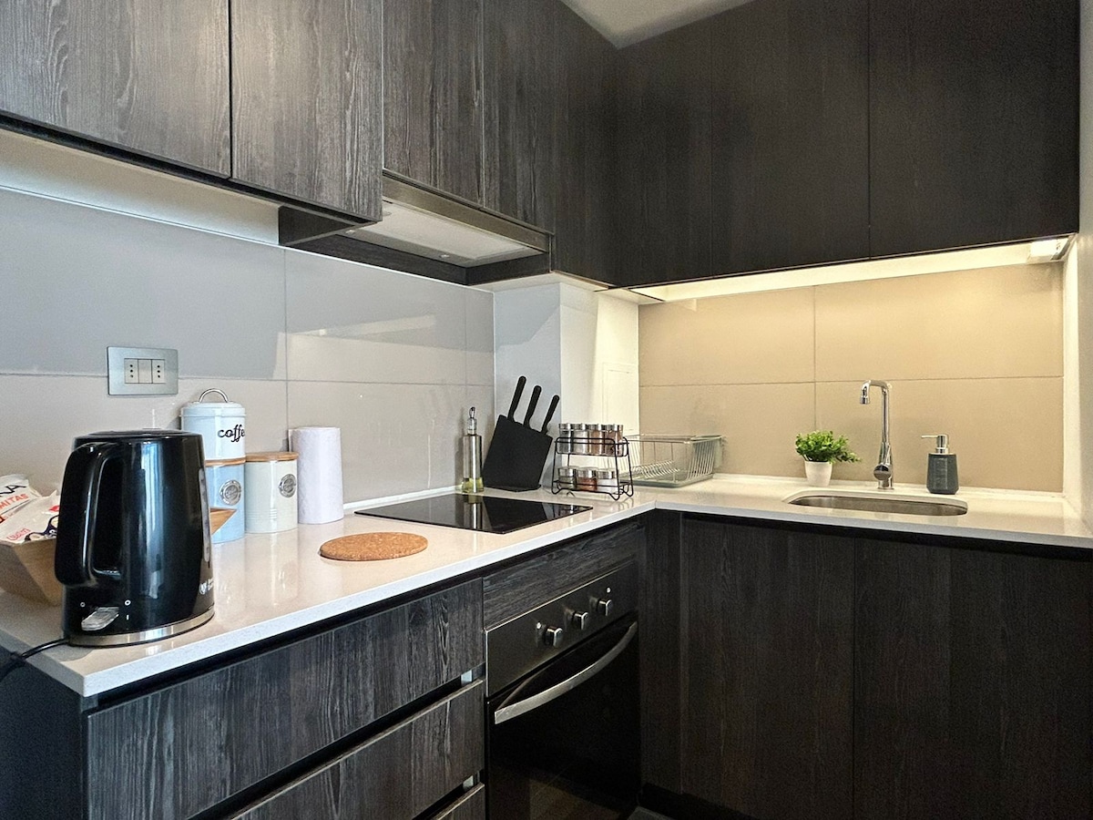 Profitez, détendez-vous et découvrez Santiago. Appartement neuf, entièrement équipé situé dans un quartier résidentiel à 7 min du métro et à 1 pâté de maisons du stade national. Il dispose de 1 chambre et 1 salle de bains, de la climatisation, d'un espace de loisirs pour les enfants, d'un parking privé et d'une sécurité 24/7 ; idéal pour les familles, les mariages, les couples, les amis et les aventuriers. Loin du bruit et à quelques mètres du stade national.
