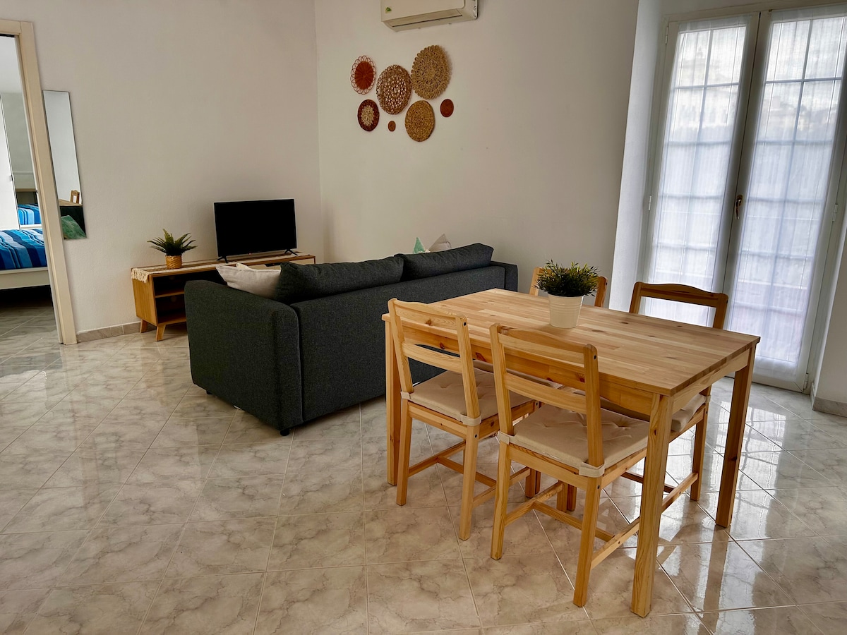 Alloggio luminoso, ampio balcone. Ascensore. Vicino alla ferrovia, ma i doppi vetri attutiscono il rumore. Impianto di aria condizionata. WI-FI fibra ultraveloce Cucina attrezzata, lavastoviglie, frigorifero. Bagno con doccia, lavatrice Camera da letto A disposizione degli ospiti lenzuola, asciugamani A pochi minuti a piedi stazione ferroviaria, navebus, autobus per raggiungere il centro città(10 km), A 5 Km. dall'aeroporto C. Colombo A pochi minuti dalla spiaggia, e dalla passeggiata a mare.