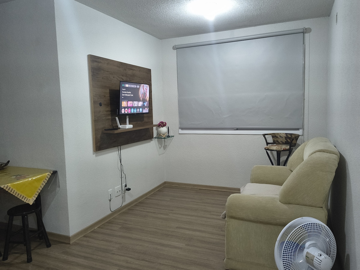 Bienvenue à Pelotas, une ville ancienne avec de nombreuses options de loisirs. L'espace est parfait pour 2 personnes mais peut accueillir jusqu'à 4. Entièrement meublé, vous aurez tout ce dont vous avez besoin pour passer des journées confortables, calmes et agréables dans un espace propre, calme, bien éclairé et organisé. Il dispose de la climatisation chaud/froid dans la chambre, Wi-Fi, Smart TV 32", cuisine complète avec plusieurs appareils électroménagers, linge de lit et de bain, sèche-cheveux, sèche-serviettes électrique, fauteuil avec masseur.
