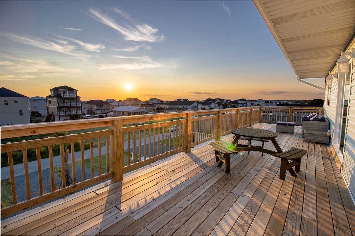 Excellente vue sur l'océan depuis la terrasse spacieuse au milieu de l'île. Profitez du café du matin et regardez les dauphins nager tout en vous relaxant dans le magnifique belvédère. La plage et la jetée sont accessibles depuis les 3 terrasses, avec jacuzzi, mobilier de terrasse et bancs. Le transport n'est pas nécessaire car Surf City Heart est idéalement situé à distance de marche des restaurants, des magasins, des épiceries, des parcs/aires de jeux, des excursions en bateau et plus encore. Accès direct à la plage privée depuis la terrasse arrière.