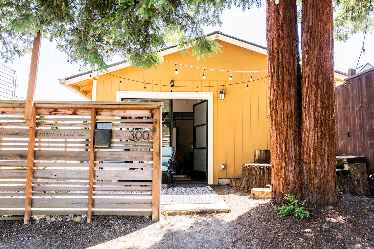 Kick back and relax in this calm, stylish one-bedroom cottage located in a peaceful and accessible North Portland neighborhood. Enjoy lounging under the Redwood trees right outside your cottage, or cooking on a 5-burner Bosch gas stove in your full kitchen. Enjoy the historic 1900's hardwood floors and new European appliances. Drive or bike to multiple awesome neighborhoods within 6-10 minutes. After a long day, enjoy the tiled walk-in shower and dream sweetly on your queen Casper mattress.
