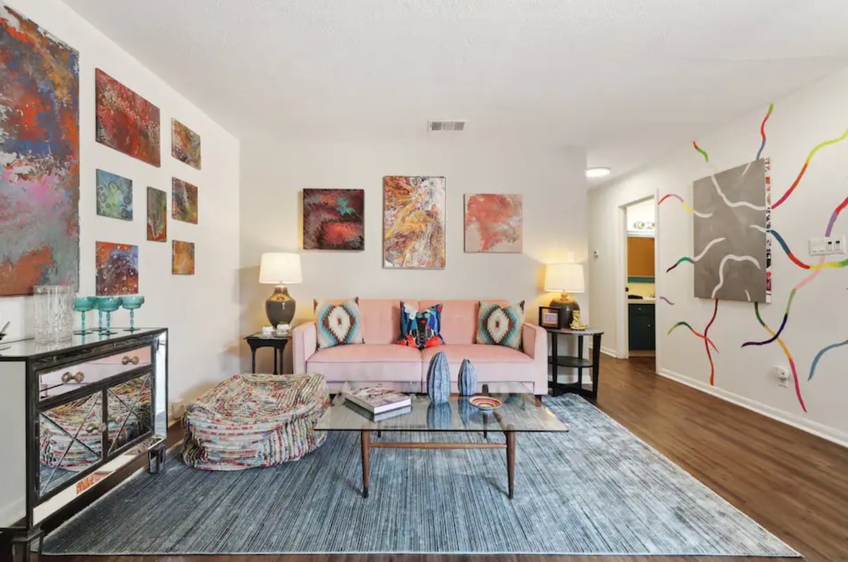 Welcome to the Woodrow Arthouse! Experience a unique combination of creativity, and comfort. Centrally located and within walking distance to grocery stores, restaurants, coffee shops, great stores, and more! This 2BR/1BA house is ideal for friends & families. The house is decorated by 2 local artists & is a quick 10 min drive to downtown (20 to the airport). After exploring ATX, enjoy the huge backyard, shared with attached apartment on this duplex property Ask about our next door listings!