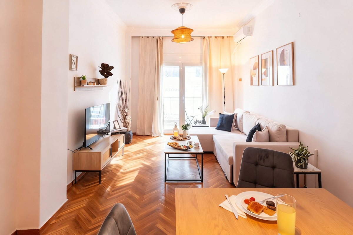 Spacieux (120 m²), récemment rénové et entièrement équipé, appartement au 1er étage au cœur de Thessalonique. À moins d'une minute à pied du front de mer, cet appartement offre un bon accès aux transports en commun, aux monuments historiques et à d'autres attractions emblématiques, aux restaurants, aux bars, aux musées et aux rues commerçantes. Il est idéal pour les familles, les voyageurs d'affaires et les explorateurs. Le choix parfait pour tous ceux qui recherchent un séjour confortable et pratique à Thessalonique.