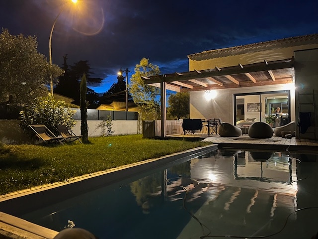 "La Maison aux Oliviers" est un petit mas de charme de 90m2, climatisé, indépendant et situé sur une ancienne oliveraie, au calme dans un jardin paysager offrant une belle piscine privative chauffée et sécurisée. Son large auvent offre la possibilité de vivre à l'extérieur à l'abri du soleil et du vent (mistral). Proche du centre historique, du marché local et des commerces (à pied), elle est parfaitement équipée pour le télétravail (Fibre haut débit)