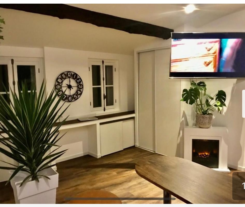 Appartement duplex situé entre la gare et le centre avec jardin et piscine privée séjour cuisine fermée, deux chambres, une grande salle de bain et une salle d'eau avec deux toilettes. La salle de bain dispose d'une baignoire balnéo pour deux personnes et d'un coin détente avec fauteuil chauffant et massant. Vous aurez accès a un jardin privé avec jacuzzi extérieur, un espace pour manger dehors avec piscine privé. Un emplacement pour garer plusieurs voitures est juste devant l'appartement.