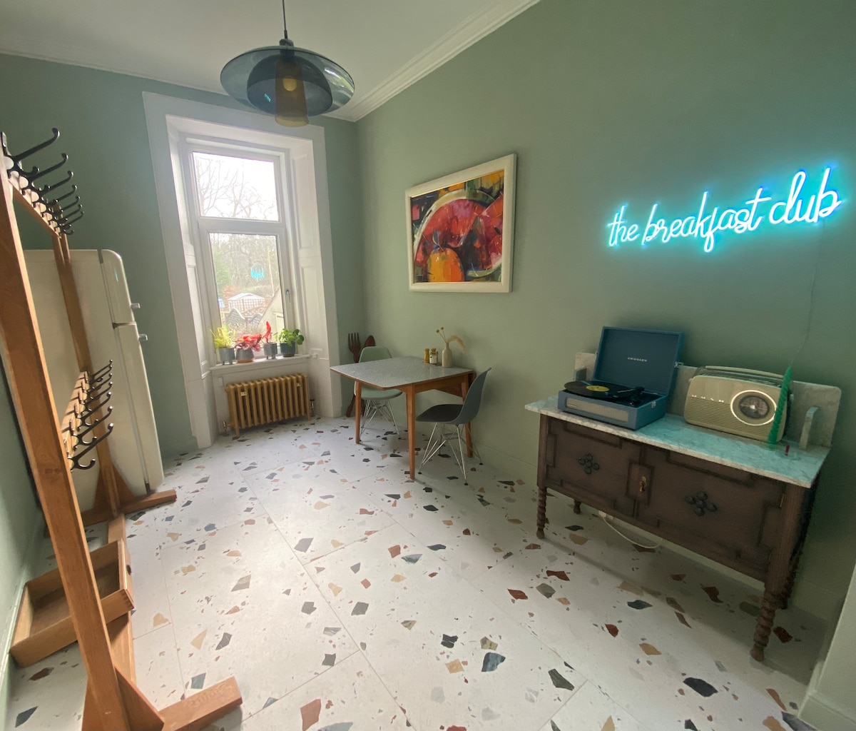 At Cnoc Sualtach (Knock-salt-ash), we offer a cosy en suite double room with a king-sized bed. Each morning, we serve a hearty breakfast made with local ingredients in our inviting dining room. Guests can unwind in the lounge, read, enjoy music, or sit by the wood burner. Our home is warm, inclusive, and welcoming, with deep respect for people and nature. We’re just a short walk from the village centre, its friendly shop, scenic paths, and the Cateran Trail and nearby beautiful spots to explore.
