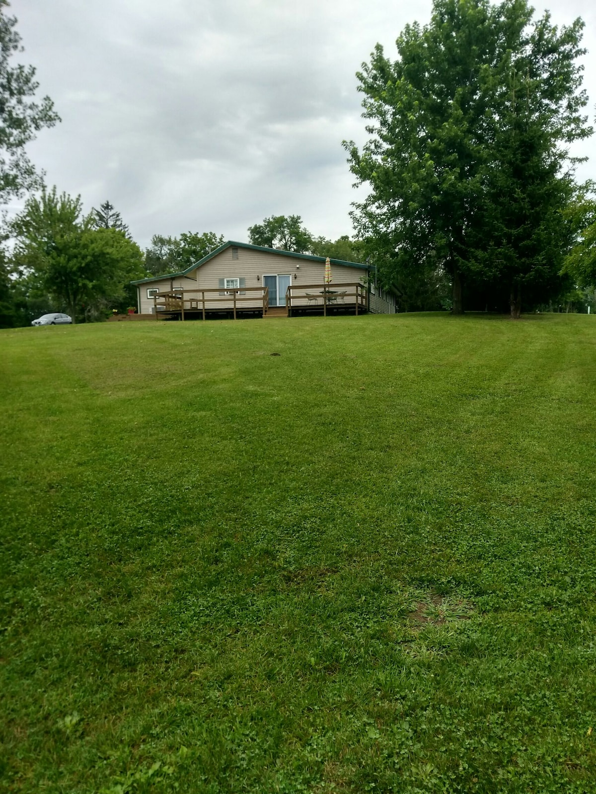 Nous avons élevé une grande famille et avons maintenant plusieurs chambres vides à l'une des extrémités de notre maison. Il y a 3 chambres et 4 lits (2 lits King Size et 1 lit jumeau... également un matelas jumeau pliant pour le sol), une salle de bain et un salon. Ce n'est pas chic, mais propre et confortable. Le petit déjeuner est une option si je suis disponible et si vous le demandez à l'avance. Nous sommes en face du lac Manitou. Nous sommes également à proximité de 2 terrains de golf. Nous sommes à quelques kilomètres de l'autoroute 31. TARIF SPÉCIAL POUR LA PÉRIODE DU 18 AU 31 MARS