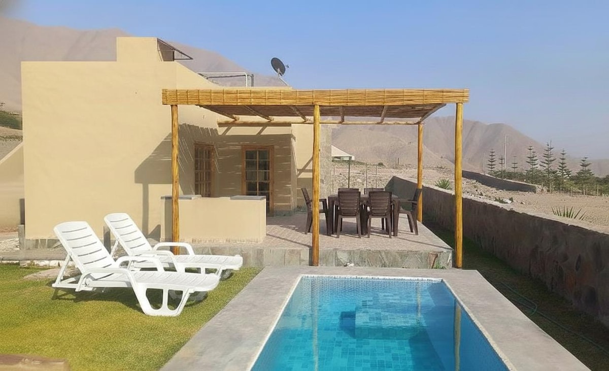 Échappe-toi de la ville et profite d'une expérience unique dans notre confortable maison de campagne. Profite du meilleur climat près de Lima, avec du soleil toute l'année. Piscine, grand jardin, barbecue et four en argile. Située dans une copropriété de seulement 5 maisons indépendantes. Espaces confortables et ventilés. Cuisine entièrement équipée. TV et WIFI haut débit. Parking privé. Pet friendly. Parfaite pour les familles, les couples ou les petits groupes en quête de tranquillité. Détends-toi à la campagne !