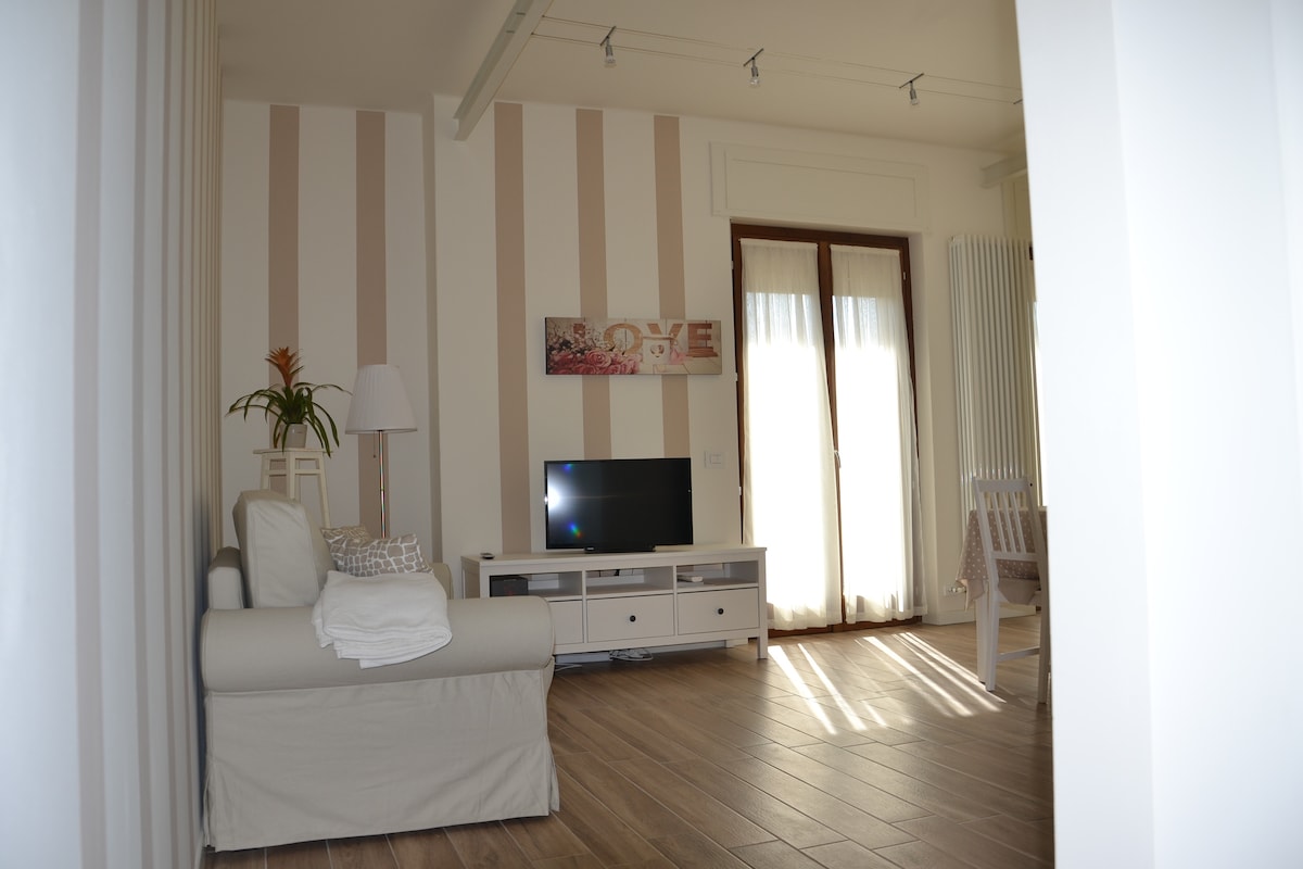 Il prestigioso appartamento si trova in centro e si affaccia sul bellissimo lungo lago. La vicinanza alle spiagge e alla passeggiata centrale, ricca di locali, fanno di questo appartamento la perfetta sistemazione per vacanze e periodi di relax. Il salotto ha un comodo divano-letto con vista lago. Il bagno è dotato di doccia e di illuminazione led per la cromoterapia. Smart-TV e rete wi-fi permettono la navigazione in internet comodamente sul divano del soggiorno.