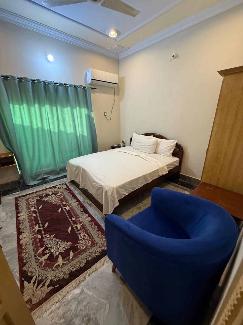 bonne sécurité et intimité car nous sommes également à proximité des banques, des distributeurs automatiques de billets, des restaurants, des centres commerciaux, et plus encore. Nous ne sommes pas seulement situés au centre ; nous sommes également près de l'aéroport de Peshawar, de l'hôpital Northwest, du RMI, de l'hôpital universitaire du Koweït et de l'hôpital universitaire Khyber. Découvrez le confort dans notre nouvelle maison d'hôtes avec un lit double propre et soigné et plusieurs chambres. Profitez du luxe des chambres climatisées, de l'eau chaude et fraîche et de l'électricité 24h/24.