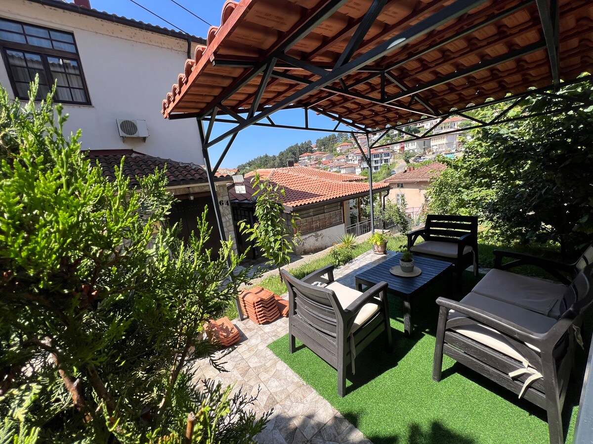 RÉNOVÉ ET RÉNOVÉ au début de 2025. Villa Lara fascine par son apparence et son emplacement dominant au cœur de la vieille ville d'Ohrid avec une vue imprenable sur le lac. L'appartement comprend une chambre, une salle de bain privée avec douche, Wi-Fi, cuisine, réfrigérateur et espace barbecue.