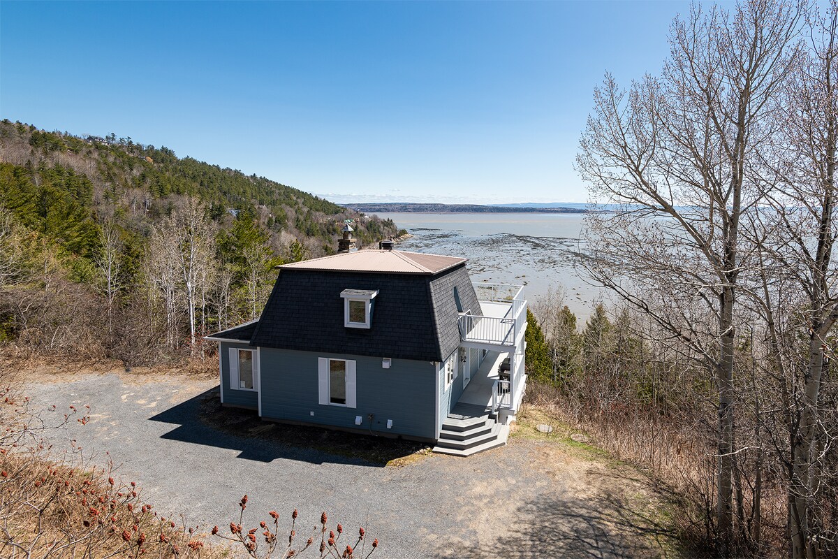 Situé sur un chemin privé, magnifique maison de campagne avec vue spectaculaire sur le fleuve St-Laurent. Toit cathédrale avec foyer double face. La grande verrière de 28 pieds ainsi que les 2 chambres à coucher font face au coucher de soleil. Electroménagers haut-de-gamme. Terrain boisé et intime de 140 000pi carré avec accès à un petit lac. Patinoire naturelle en hiver. Terrasse extérieure avec BBQ. Foyer extérieur. Une propriété au cachet unique. Non-fumeurs, pas d'animaux Verrière 3 saisons