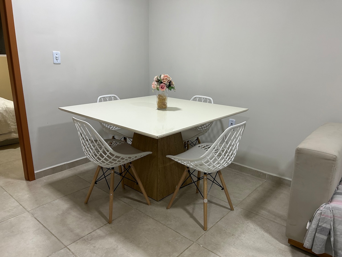 #Vous venez pour le travail ou le plaisir ? Il est confortable et fonctionnel pour les couples et les familles, et parfait pour ceux qui viennent pour le travail et ne veulent pas renoncer au confort. Séjournez dans un appartement tout neuf et complet. - Internet ultra-rapide (1 Gb), télévision 55", canapé confortable, hamac et chambre climatisée avec grand lit confortable. Un emplacement stratégique : - Le prochain de SÃO JOÃO DO VALE ; - À 5 min du centre-ville et des événements ; - À 9 min de l'aéroport. ✨ Apportez simplement votre valise : le confort vous attend ici.