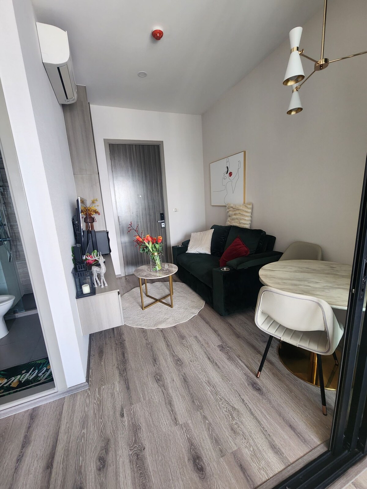 Votre retraite élégante au cœur d'Onnut ! Cet appartement entièrement meublé d'une chambre offre confort et commodité — parfait pour les voyageurs en solo, les couples ou les nomades numériques qui aiment la vie moderne dans le quartier animé de Bangkok. Un 📍 emplacement privilégié * 🚶♂️ À seulement 4 minutes à pied de la gare BTS Onnut * 🛍️ À côté du supermarché Lotus, du Century Mall et du 7-Eleven * 🍜 Entouré de cafés, de nourriture de rue, de restaurants et d'un cinéma * Accès facile à Sukhumvit Road, Ekkamai et Thonglor