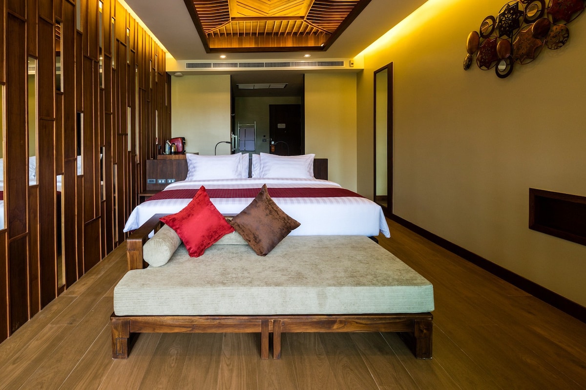 For guests hoping to see breathtaking sunsets, the Silk Ao Nang Serviced Apt is conveniently located 300 meters from Ao Nang Beach. Situated in the centre of Ao Nang, around restaurants, retail stores and services like booking a tour. This unit offers a sea view due to its location on a gorgeous lower hill slope, which is easily accessible by walking or free shuttle service. Additionally, you have access to the swimming pool, a fitness centre, and free WiFi, making it ideal for family holidays.